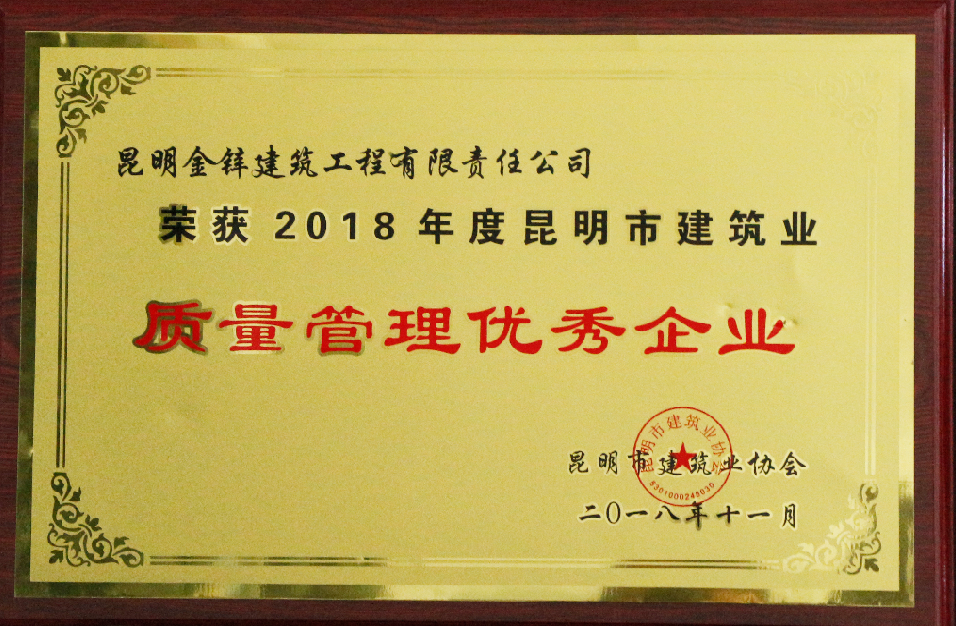 2021昆明市建筑業(yè)質量管理優(yōu)秀...