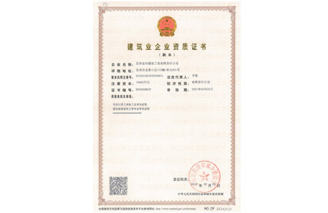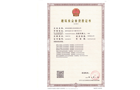 金鋅裝飾裝修一級(jí)資質(zhì)證書(shū)正本